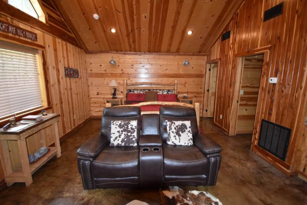 Lucky Log is a 1 bedroom studio cabin located in the new Hochatown Trails development 1/8 mile North of the entrance to Broken Bow Lake and Beaver's Bend State Park. Lucky Log sits on 1.4 acres and offers plenty of privacy for you and and your guests. Lucky Log will sleep a MAXIMUM of 2 guests comfortably and has one private bathroom. It also features a flat screen T.V. with satellite & free Wi-Fi.