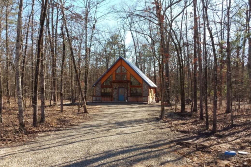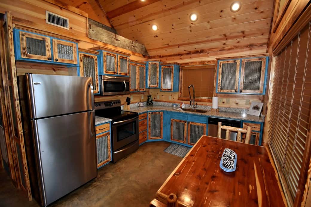 Ole Blue is located only minutes from the entrances to Beavers Bend State Park and Broken Bow Lake. Ole Blue is a modern rustic cabin that features vaulted ceilings and reclaimed support beams from a local factory. It also has modern handmade cabinetry with rustic tin doors, sliding barn doors and beautiful cedar furniture. It is nestled amongst soaring pines and beautiful hardwoods. It will sleep up to a MAXIMUM of 2 guests which is perfect for couples and honeymooners.